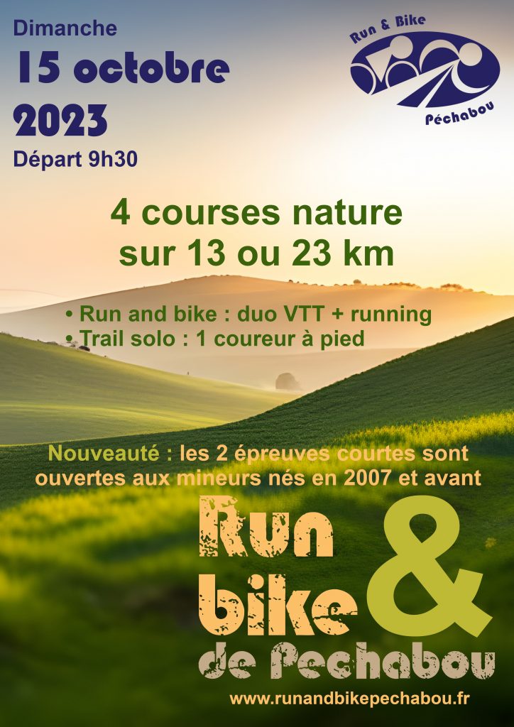 Nouveauté cette année, la course est ouverte aux mineurs à partir de 16 ans (parcours de 13 km) en duo Run & Bike ou solo trail. Les participants auront le plaisir de parcourir un magnifique circuit vallonné composé pour moitié de chemins et de petites routes du Sicoval traversant pas moins de 7 communes : Pechabou, Rebigue, Corronsac, Montgiscard, Donneville, Deyme et Pompertuzat.