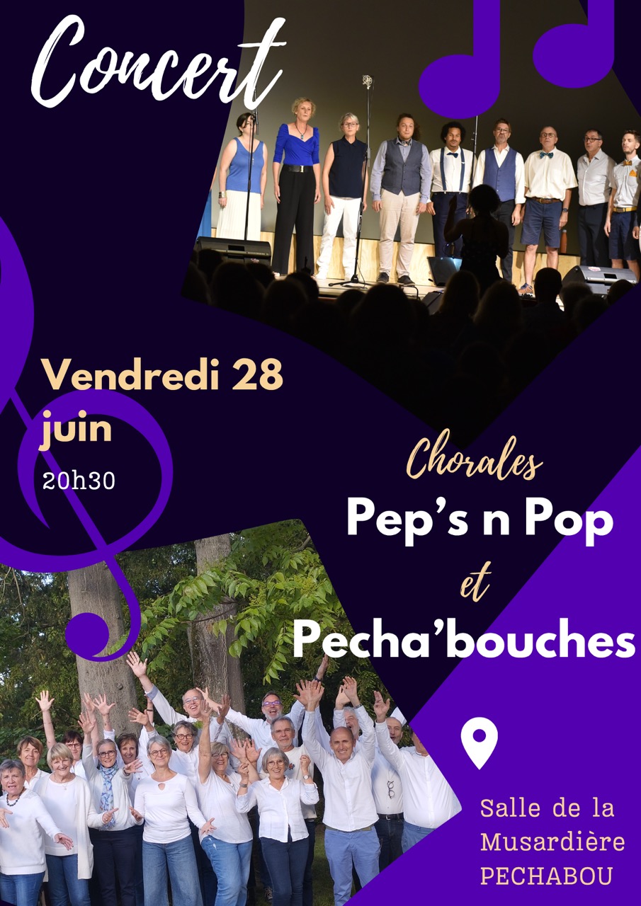 Les chorales Pep’s n Pop et Pecha’bouches, toutes deux dirigées par Laure, se retrouveront vendredi 28 juin 2024 à la salle de la Musardière pour un concert.