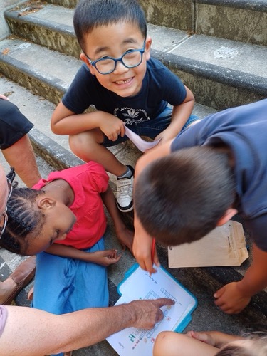 Pour la dernière séance du CLAS de l’année scolaire, nous avons fait appel à Fleur, animatrice de l’ALAE et passionnée de jeux, pour qu’elle nous prépare un rallye photos permettant de retrouver le trésor du parc de la mairie.