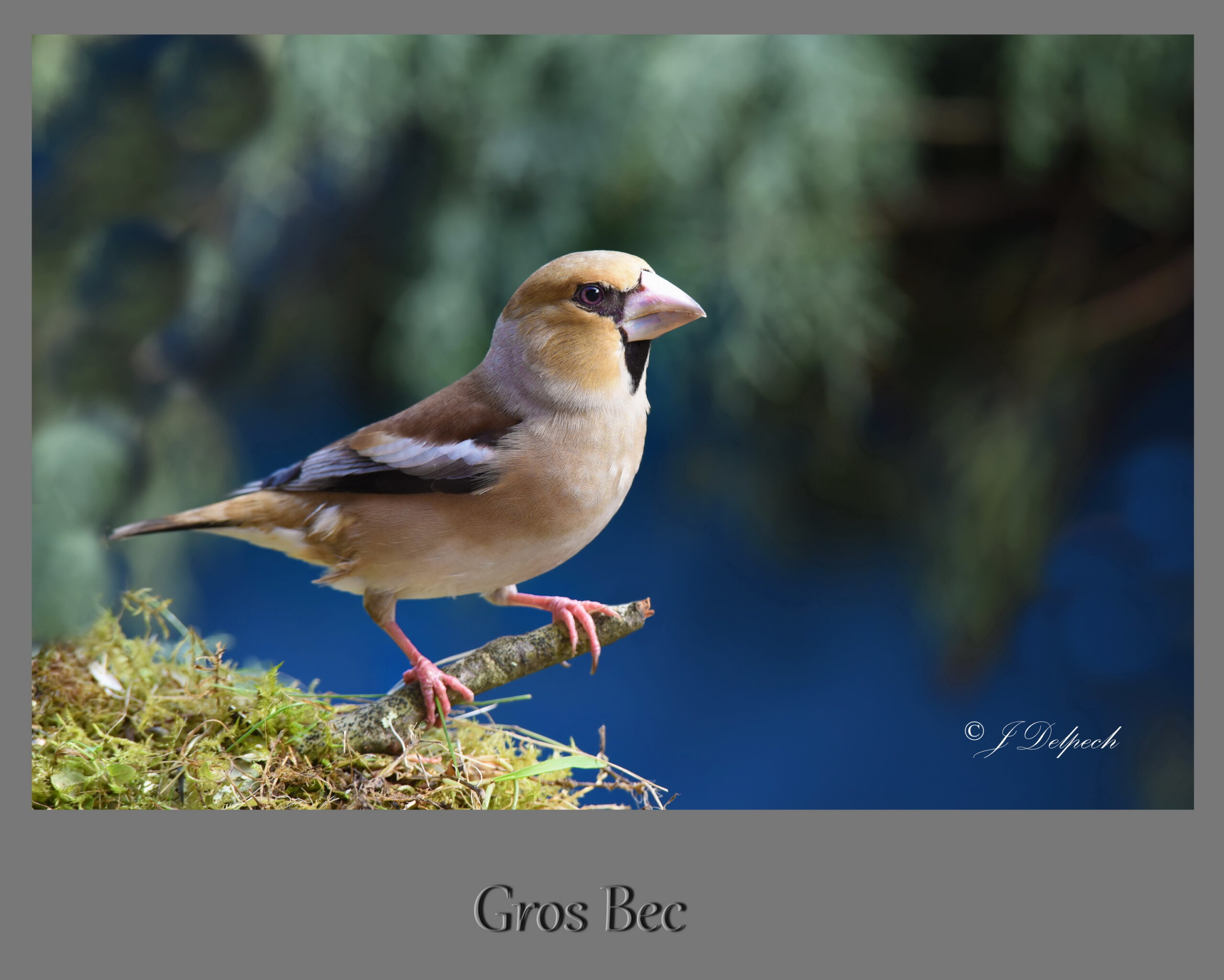 - le gros-bec qui est un oiseau magnifique de la taille moyenne, entre le moineau et le merle. Son plumage est très coloré. Il est armé d’un bec très massif et puissant qui lui permet de casser des noyaux, c’est pour cela qu’on le nomme : le gros-bec casse-noyaux.