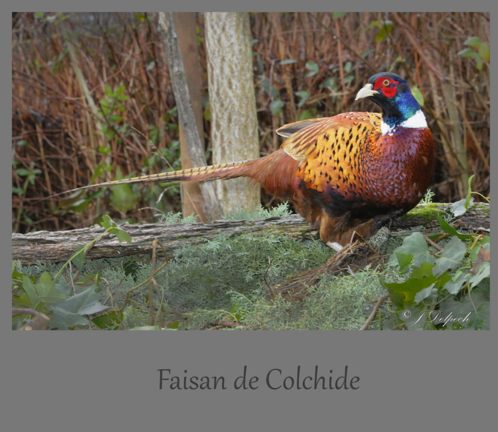 Chez nous, nous avons essentiellement des corneilles. Leurs becs puissants et droits sont capables de déchirer les charognes, les noix et même parfois – j’ai pu le voir – les noisettes. Elles sont de vraies concurrentes des écureuils. Les corneilles mal aimées des hommes sont malgré tout très utiles, car elles contribuent au nettoyage de la biodiversité : elles peuvent effectivement consommer des charognes, des petits insectes et toutes sortes de parasites. Il est fréquent de les voir se ravitailler ainsi. - le faisan de Colchide : la Colchide est une région de la Géorgie. Le faisan est un gibier dans nos régions. Effectivement, il y a souvent des lâchers de faisans sur la commune pour satisfaire les besoins des ACCA (associations communales de chasse agréées).