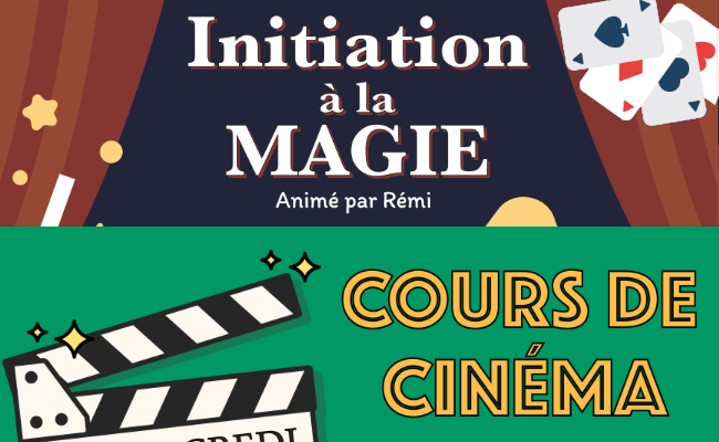 Les deux séances auront lieu mercredi 11 septembre de 17 à 18 h pour la magie et de 18 à 19 h pour le cinéma à la maison des associations.